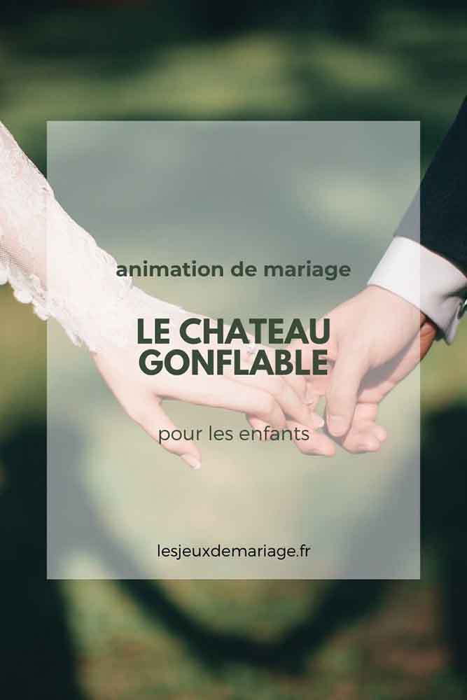 L’animation mariage Le château gonflable est une animation de mariage habituellement réservée aux aires de jeux pour enfants dans les campings et autres lieux d’animation. Pourquoi ne pas en installer pour votre mariage ? Faites leur confiance : les enfants adorent ça !